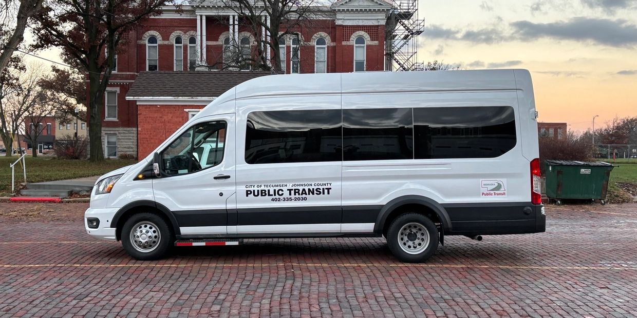 The City of Tecumseh/Johnson County Public Transit serves the general public, including persons with disabilities, in all of Johnson County on a demand-responsive basis. We have one van (9-passenger & 2 wheelchair passengers with seats removed) that is lift-equipped. Cities served include Tecumseh, Elk Creek, Vesta, Crab Orchard, Sterling, St. Mary and Cook. Appointments first come, first served. You must call 24hrs in advance for an appointment.